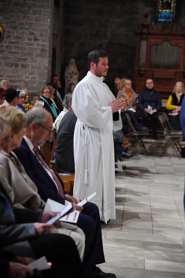Toute l’assemblée, autour de l’évêque, va invoquer le Saint-Esprit dans un instant, nous allons demander à tous les saints du Ciel leur intercession pour vous et pour l’Église. Le Seigneur vient faire de vous son gérant, son serviteur, son diacre. Il vous confie le trésor de sa grâce, il vous associe à son œuvre de salut. Il vous a choisi, il vous consacre, il vous envoie comme un témoin efficace et joyeux de la charité.