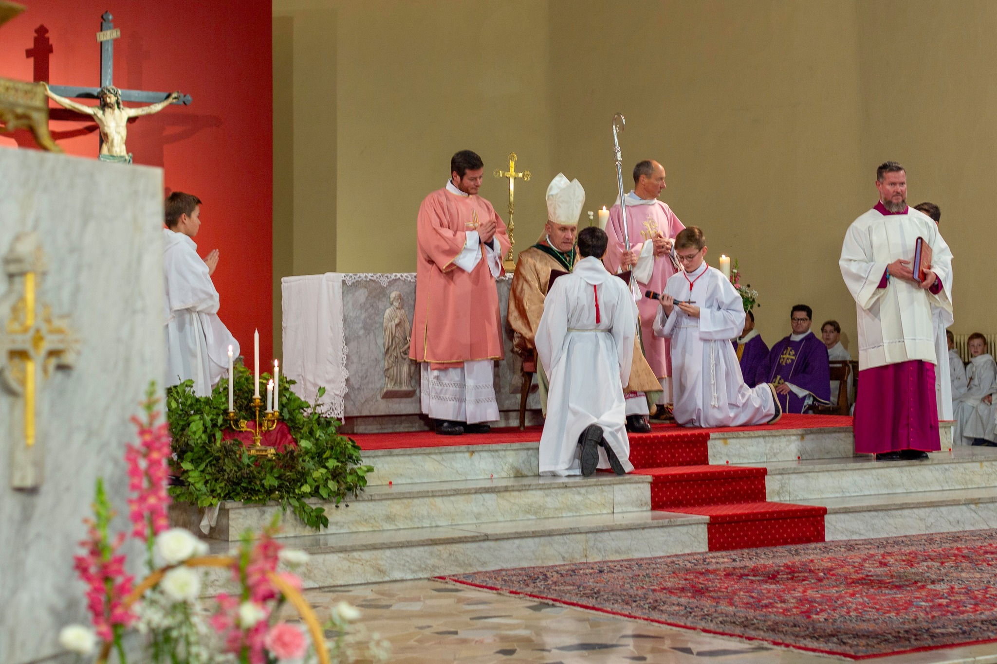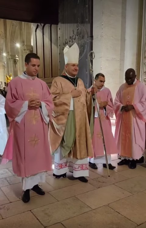 En célébrant la sainte Eucharistie ce soir, nous entrons dans le grand mystère qui est la cause profonde de notre joie et de notre espérance : Jésus le Christ, Fils éternel de Dieu, est mort sur la croix. Il a vaincu la mort au matin de Pâques. Nourris du Corps du Christ et abreuvés du Sang du Christ, vous allez répandre la joie par rayonnement de charité et de bonté, de miséricorde et de grâce. Nous vous portons dans notre prière en redisant au Seigneur notre désir d’aller, nous aussi, porter la joie : « pousse des cris de joie, éclate en ovations, réjouis-toi… le Seigneur est en toi, tu n’as plus à craindre le malheur. Il aura en toi sa joie et son allégresse, il te renouvellera par son amour, il exultera pour toi et se réjouira comme aux jours de fête » .