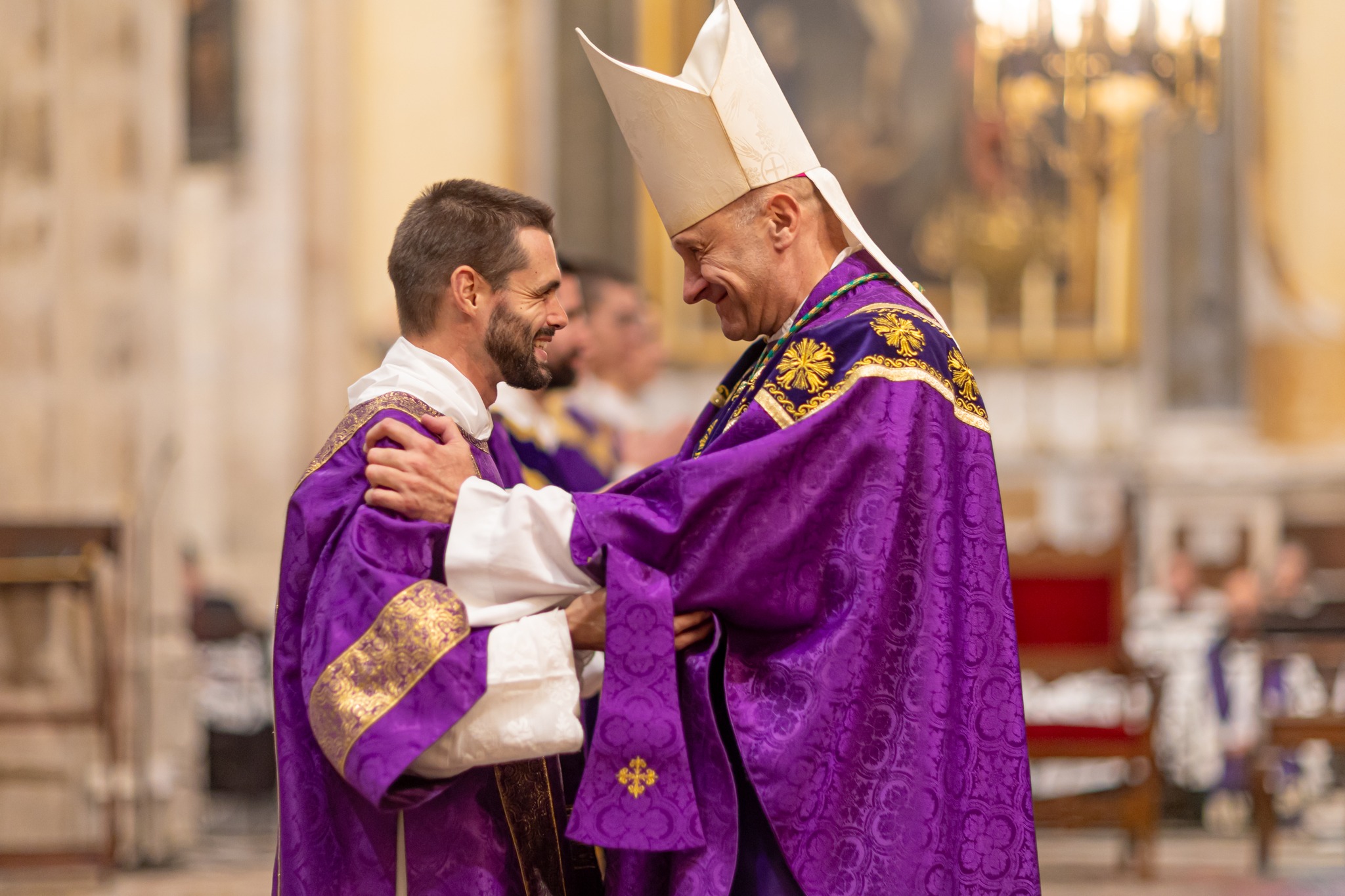 Serviteurs de la RĂ©demption : nous lâavons entendu dans la bouche mĂȘme de JĂ©sus : « votre rĂ©demption approche », « le royaume de Dieu est proche », ou dans la bouche de saint Paul : « le salut est plus prĂšs de nous maintenant quâĂ lâĂ©poque oĂč nous sommes devenus croyants ». Le Messie, le Sauveur⊠le peuple dâIsraĂ«l lâattendait depuis des siĂšcles. Une attente longue et mouvementĂ©e, faite de crises comme lâexil Ă Babylone, une attente ponctuĂ©e dâinfidĂ©litĂ©s et de conversions. Mais Dieu, fidĂšle Ă sa promesse pour mille gĂ©nĂ©rations (Ex 34,7), vient visiter la terre. Le Fils Ă©ternel prend chair de notre chair en la Bienheureuse Vierge Marie. Comme lâĂ©crivit saint IrĂ©nĂ©e, « Le Verbe de Dieu est venu habiter dans l’homme ; il s’est fait « Fils de l’Homme » pour habituer l’homme Ă recevoir Dieu et pour habituer Dieu Ă habiter dans l’homme » (Adv. Haereses III,20,2-3). Chers frĂšres, vous allez donc servir cette venue du rĂ©dempteur dans le monde dâaujourdâhui. Par votre proximitĂ© avec JĂ©sus, vous offrirez aux autres la proximitĂ© du Seigneur, sa bontĂ© salvatrice. Saint Charles de Foucauld, cher aux Missionnaires de la MisĂ©ricorde divine par son amour de lâEucharistie et sa prĂ©sence au milieu des musulmans, celui dont câest la fĂȘte aujourdâhui mĂȘme si le dimanche de lâAvent a la primeur, disait ceci que vous pourrez chercher Ă vivre : « Mon Seigneur JĂ©sus, vous avez mis en moi ce tendre et croissant amour pour vous, ce goĂ»t de la priĂšre, cette foi en votre Parole, ce sentiment profond du devoir de l’aumĂŽne, ce dĂ©sir de vous imiter, cette soif de vous faire le plus grand sacrifice qu’il me fut possible de vous faire. »