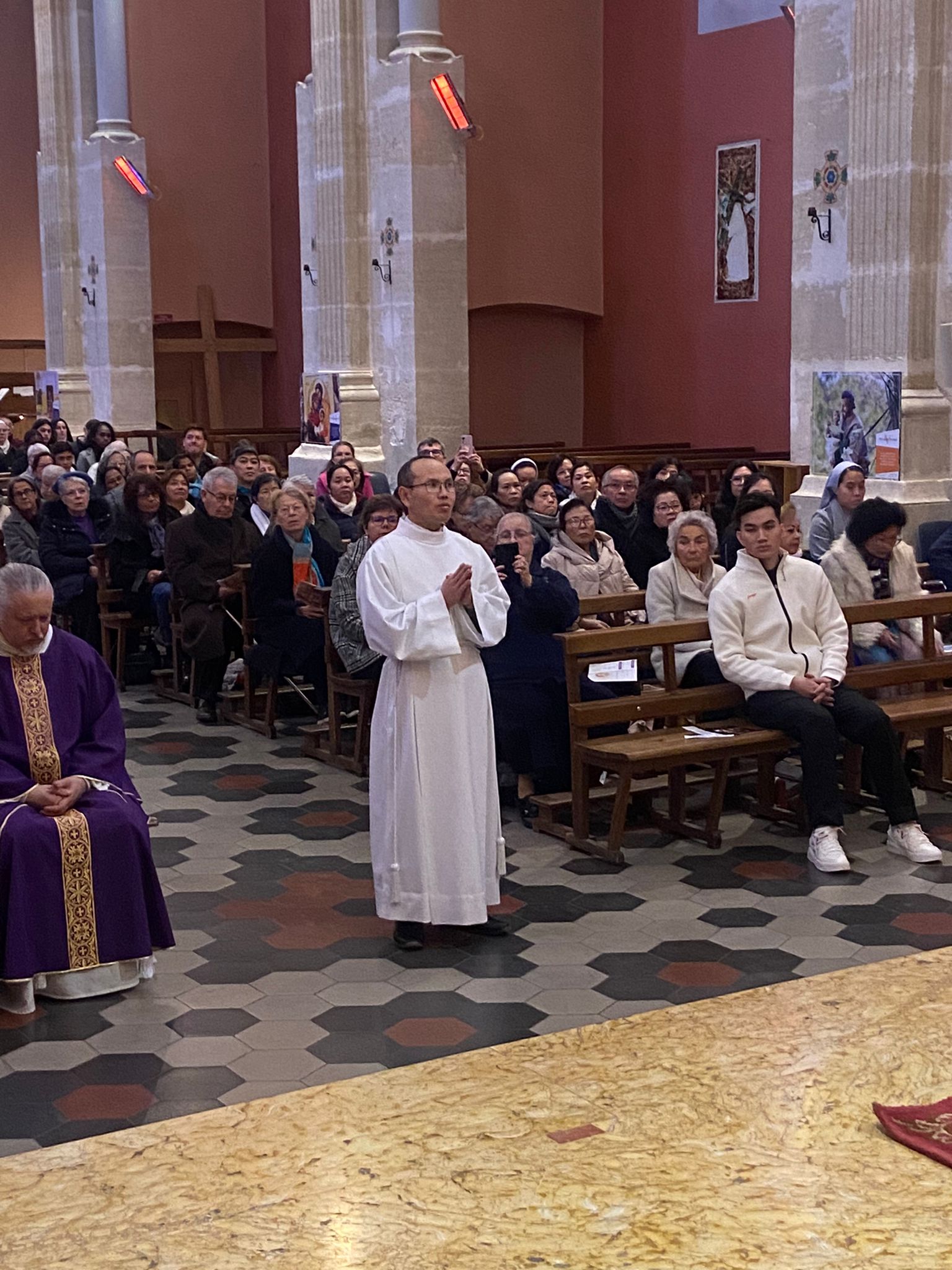 Le diacre Joseph sera serviteur de ce grand mystère. Depuis sa naissance Ă Ha Tinh au Vietnam, ses Ă©tudes de physique Ă SaĂŻgon et quelques annĂ©es d’enseignement, il arrive en France il y a 10 ans pour entrer au sĂ©minaire. Une vocation prĂ©sente dans son cĹ“ur depuis longtemps, mais contrariĂ©e par les calculs subtils et idĂ©ologiques du système politique vietnamien. En voyageant dans ce pays lointain et très beau il y a quelques annĂ©es, j’ai constatĂ© la vitalitĂ© de l’Église et des paroisses, et le très grand nombre de vocations. Joseph est venu ici dans un contexte bien diffĂ©rent pour offrir aux petits et aux pauvres la joie de rencontrer JĂ©sus. Comme Jean-Baptiste, ils peuvent vivre – et nous les premiers – ce tressaillement que dĂ©crivait si bien le Saint-Père dans son homĂ©lie au stade vĂ©lodrome Ă Marseille l’an dernier : « Tressaillir c’est ĂŞtre “touchĂ© Ă l’intĂ©rieur”, avoir un frĂ©missement intĂ©rieur, sentir que quelque chose bouge dans notre cĹ“ur. C’est le contraire d’un cĹ“ur plat, froid, installĂ© dans la vie tranquille, qui se blinde dans l’indiffĂ©rence et devient impermĂ©able, qui s’endurcit, insensible Ă toute chose et Ă tout le monde, » Le diacre va permettre aux autres de percevoir quotidiennement la visite de Dieu, de se sentir acompagnĂ© et soutenu par Lui. Il va aider les chrĂ©tiens – mais pas seulement – Ă se mettre en route avec empressement vers le prochain, Ă rencontrer Dieu en JĂ©sus, Ă ĂŞtre – comme le disait aussi le Pape – des « chrĂ©tiens qui tressaillent, vibrent, accueillent le feu de l’Esprit pour se laisser brĂ»ler par le cri des pauvres, par les saintes utopies de fraternitĂ© et de paix qui attendent d’être rĂ©alisĂ©es. »