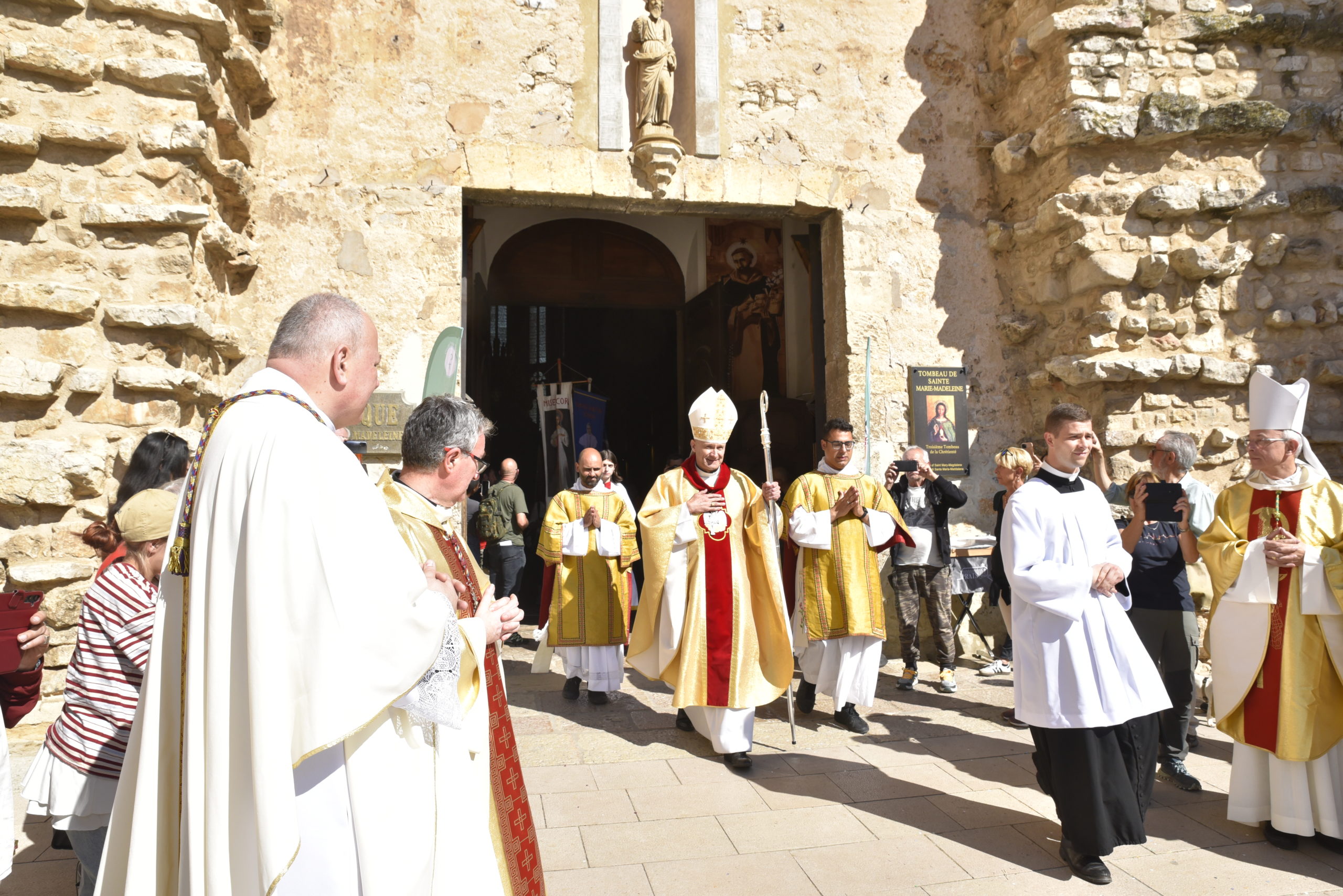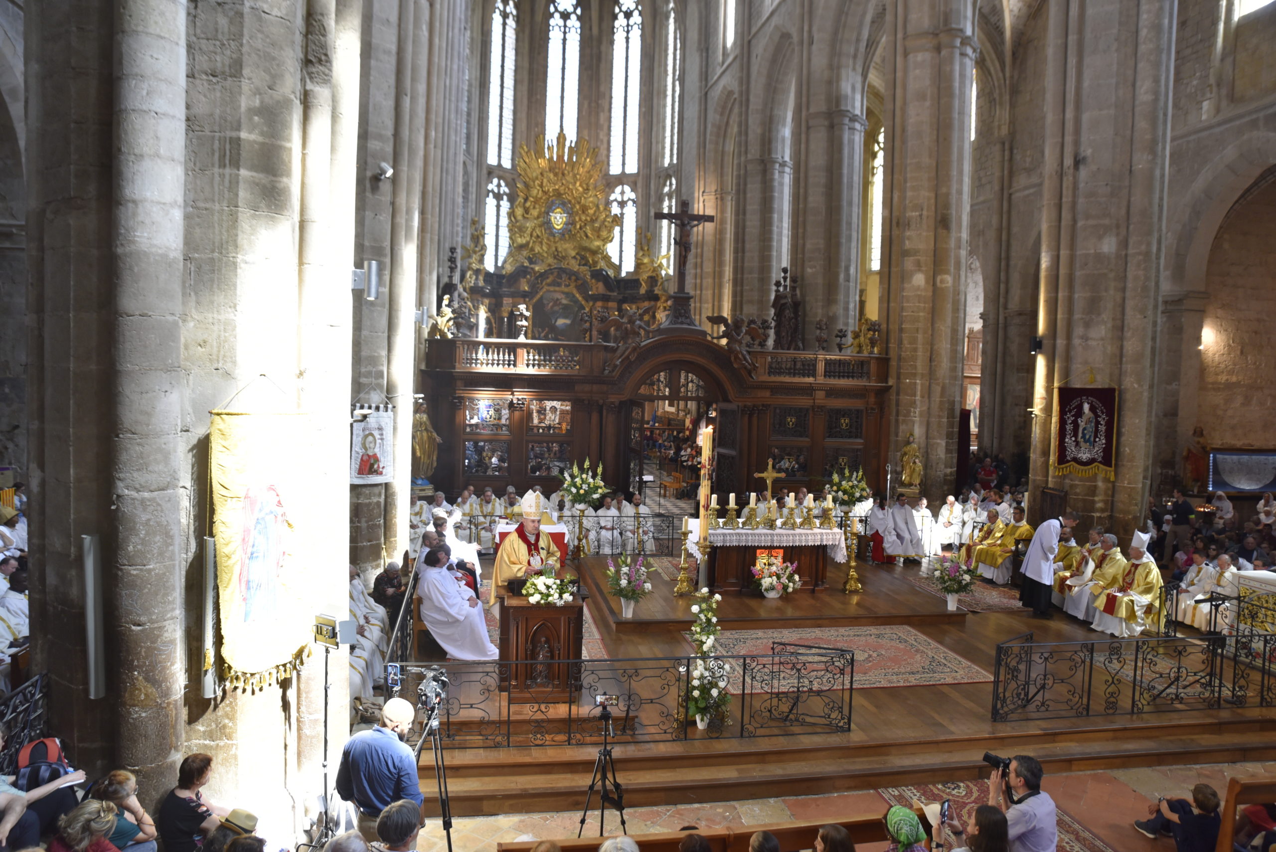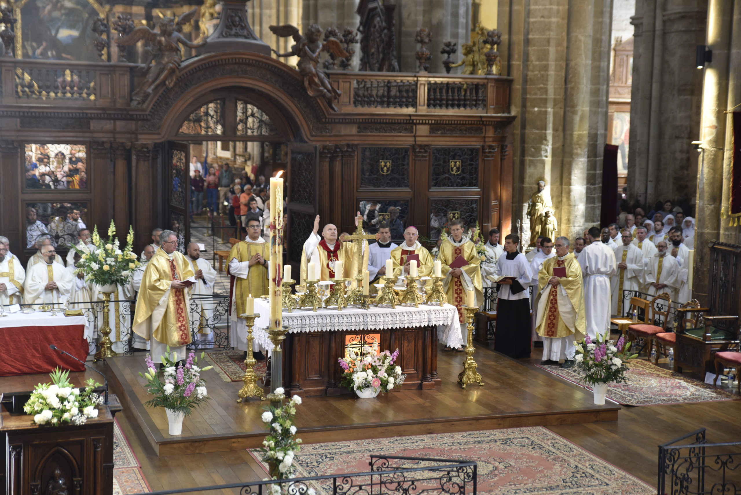 C’est le moment favorable pour en faire l’expérience intérieure et l’expérience communautaire. Le Seigneur est avec nous, comme il a rejoint les disciples quittant Jérusalem tout tristes, il nous enseigne par sa Parole que l’Église explicite pour nous dans son Magistère, il nous partage le Pain de Vie qui refait nos forces, il nous envoie depuis Emmaüs jusqu’à Jérusalem en témoins de la victoire. Il nous associe à sainte Marie-Madeleine dont nous vénérons ici les reliques. L’apôtre des Apôtres est la patronne du diocèse et c’est vraiment une grâce de se laisser renouveler dans l’espérance ici même à Saint-Maximin, « par le Saint-Esprit qui nous a été donné ». Le diocèse réuni, l’Église locale rassemblée, chacune de nos paroisses, chacun et chacune d’entre nous, nous demandons au Seigneur la grâce d’être renouvelés dans notre unité et dans notre élan missionnaire.